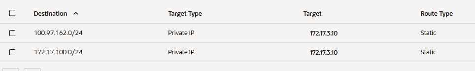 oci.exceptions.ServiceError: {‘target_service’: ‘virtual_network’, ‘status’: 400, ‘code’: ‘InvalidParameter’, ‘opc-request-id’: ‘BC5503C6FE4944E08DAD7F7A2BD45F57/376017FDE6311BCC4FB37669434447F6/6F05978C5E8A15ECA6B293CD6CA20A7C’, ‘message’: ‘Duplicate rule found with route table id ocid1.routetable.oc1.eu-paris-1.aaaaaaaa, destination 172.17.100.0/24 and destination type CidrBlock’, ‘operation_name’: ‘update_route_table’, ‘timestamp’: ‘2026-01-26T00:20:31.717033+00:00’, ‘client_version’: ‘Oracle-PythonSDK/2.144.0’, ‘request_endpoint’: ‘PUT ``https://iaas.eu-paris-1.oraclecloud.com/20160918/routeTables/ocid1.routetable.oc1.eu-paris-1.aaaaaaaa’``, ‘logging_tips’: ‘To get more info on the failing request, refer to https://docs.oracle.com/en-us/iaas/tools/python/latest/logging.html` for ways to log the request/response details.’, ‘troubleshooting_tips’: “See https://docs.oracle.com/iaas/Content/API/References/apierrors.htm#apierrors_400__400_invalidparameter for more information about resolving this error. Also see https://docs.oracle.com/iaas/api/#/en/iaas/20160918/RouteTable/UpdateRouteTable for details on this operation’s requirements. If you are unable to resolve this virtual_network issue, please contact Oracle support and provide them this full error message.”}`