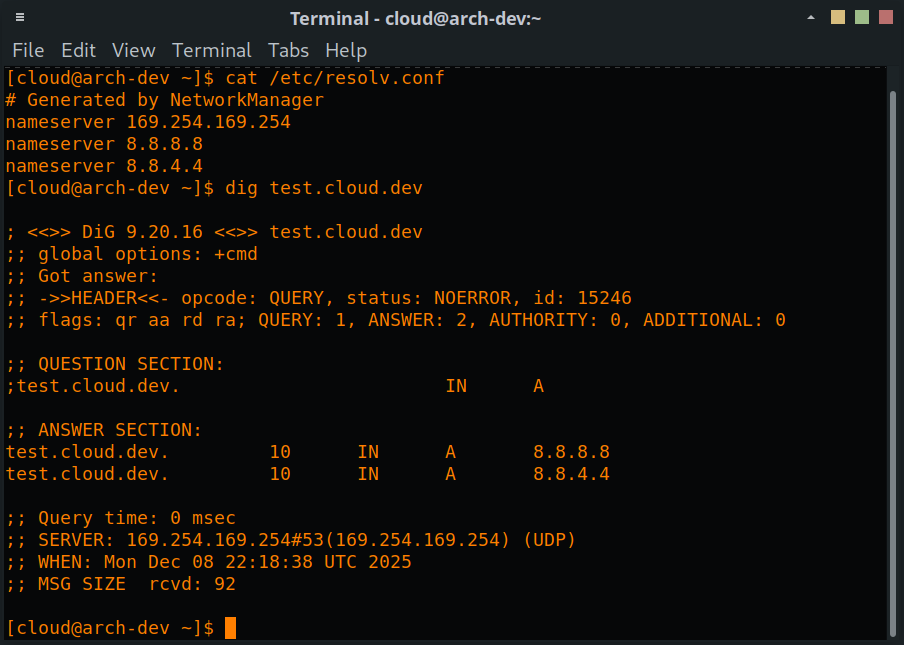 The internal DNS system is handled by the instance IMDS service running on the instance namespace on the host under the IP 169.254.169.254. This DNS server will be configured by cloud-init with a fallback to Google public DNS. The DNS server on the IMDS service will either return records for internal domains or proxy the request to the Google public DNS servers. This includes request for internal provider types. For this reason it’s best to only utilize domains that cannot be registered publicly or one that you have control to avoid uncontrolled responses from the public DNS system.